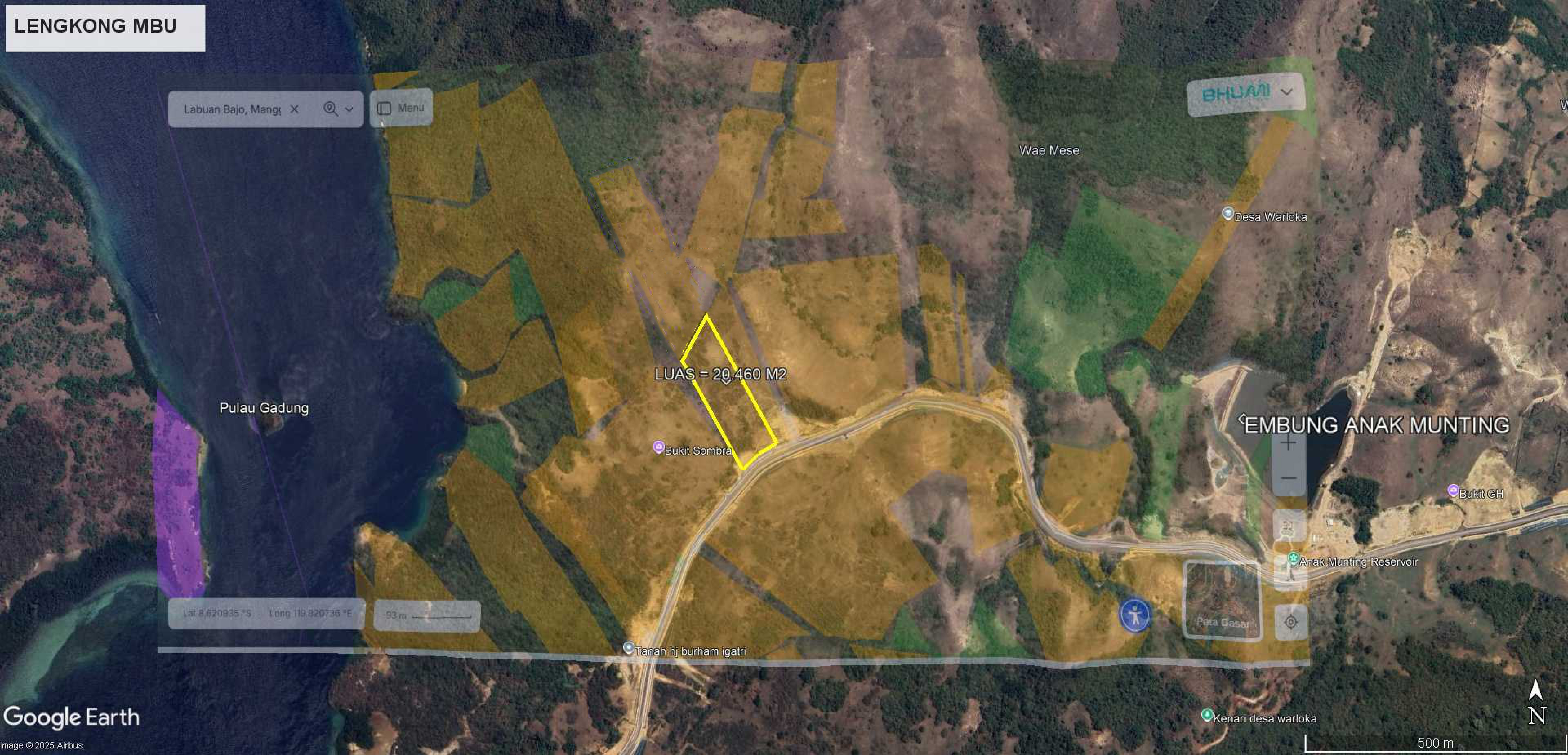 Lahan strategis di Lengkong Mbu Golomori (di sepanjang Jalan Warloka-Golomori) dengan potensi pengembangan properti yang tinggi